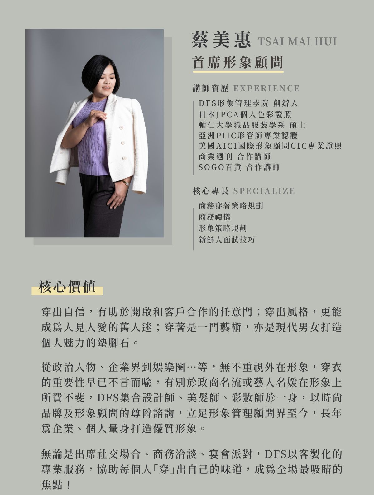 首席形象顧問蔡美惠介紹
